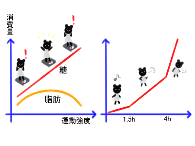 長時間運動すると糖分が不足して脂肪が消費されなくなるので、